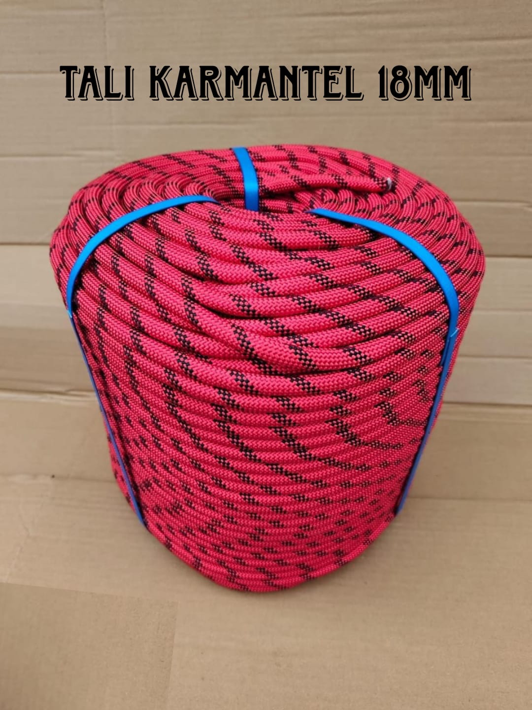 Tali karmantel 18MM memiliki diameter sekitar 18 mm dengan konstruksi inti dan mantel yang kuat. Inti tali berfungsi sebagai penopang utama kekuatan tarik, sementara lapisan luar memberikan perlindungan dari gesekan dan kerusakan akibat penggunaan intensif.